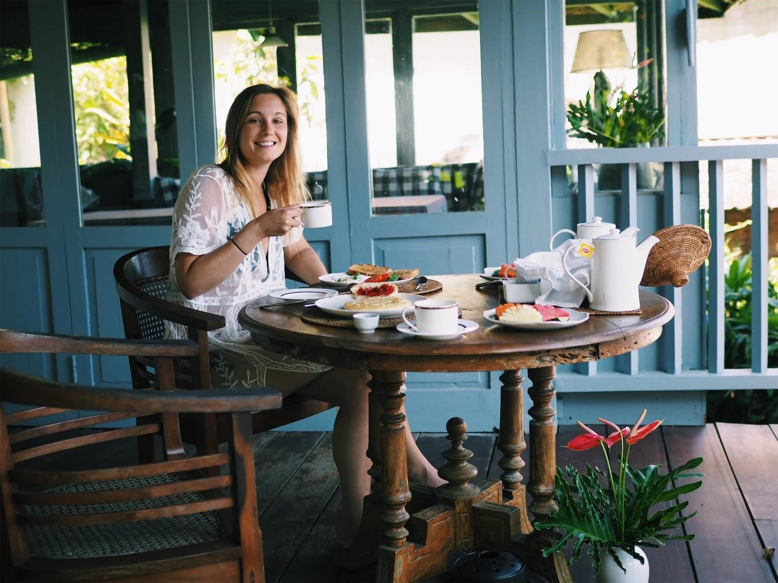 We got some nice snaps of the view before wandering around the temple, taking it in from all angles while the sun slowly rose higher. Although there were quite a few tourists for sunrise, we still enjoyed moments of calm and space in the temple, and many people left once the sun had risen completely, meaning we could enjoy it without getting in the way of any selfies. We then headed back down the stone steps and walked around the base of the temple to see it in its entirety, before walking back to the Manohara Hotel restaurant for our free breakfast (included in the ticket cost).