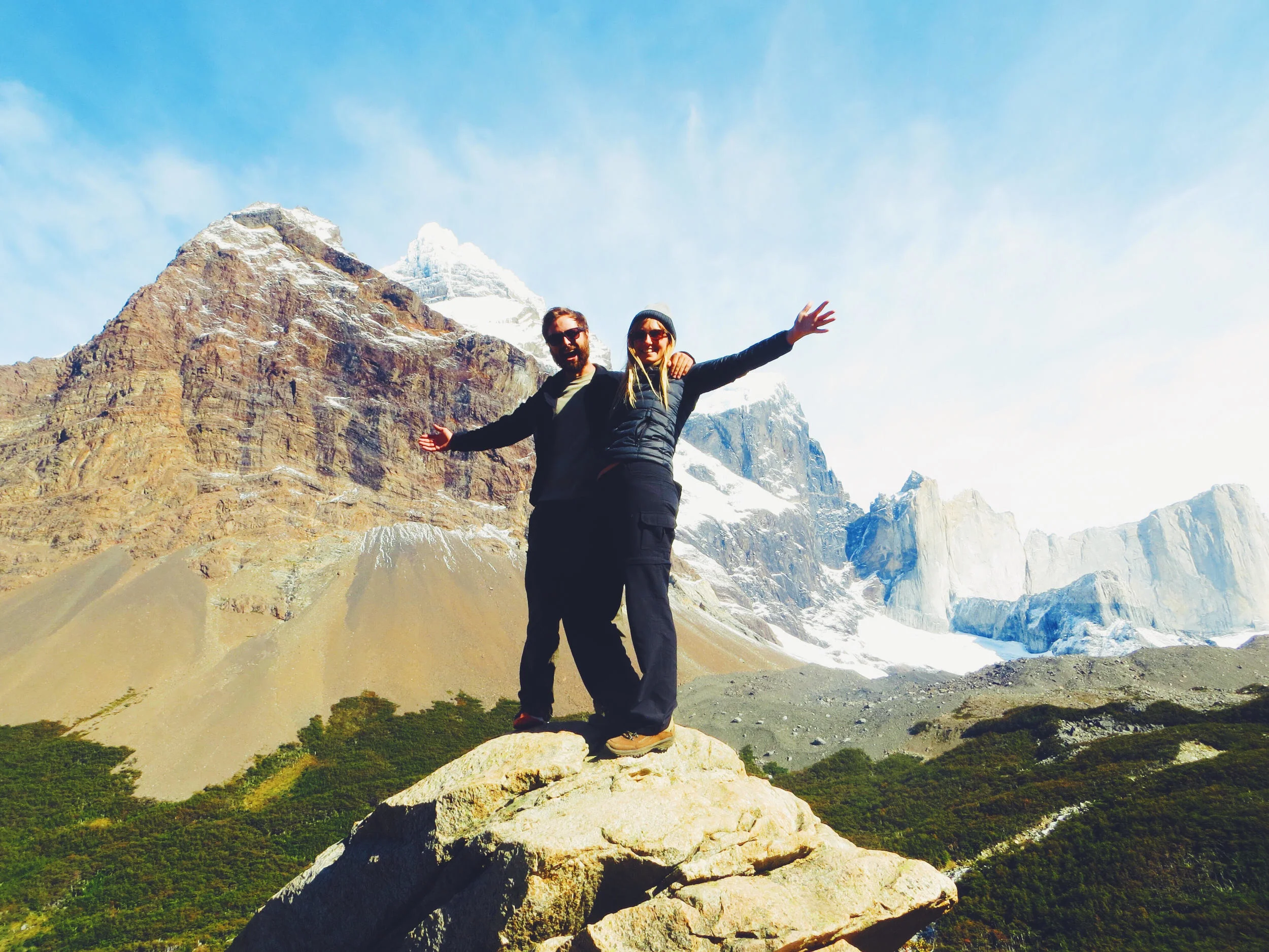 After a very wet and windy night we woke up to clear blue skies, much to our relief! We hung our wet tent up to dry during breakfast, left our packed bags at the campsite and ventured out with light daypacks to the Valle del Francés (or French Valley). Not having to carry such weight made a massive difference, and we felt a new wave of energy with our lighter packs and trekked through the stunning valleys in the beaming sunshine. Surrounded by towering snow-covered mountains, sprawling glaciers, waterfalls, raging rivers and turquoise lakes, for us it was the most amazing panoramic view we’d ever seen. After following the river through thick forest, the footpath ended at Mirador Britanico where we stopped for lunch completely surrounded by the breathtaking landscape.