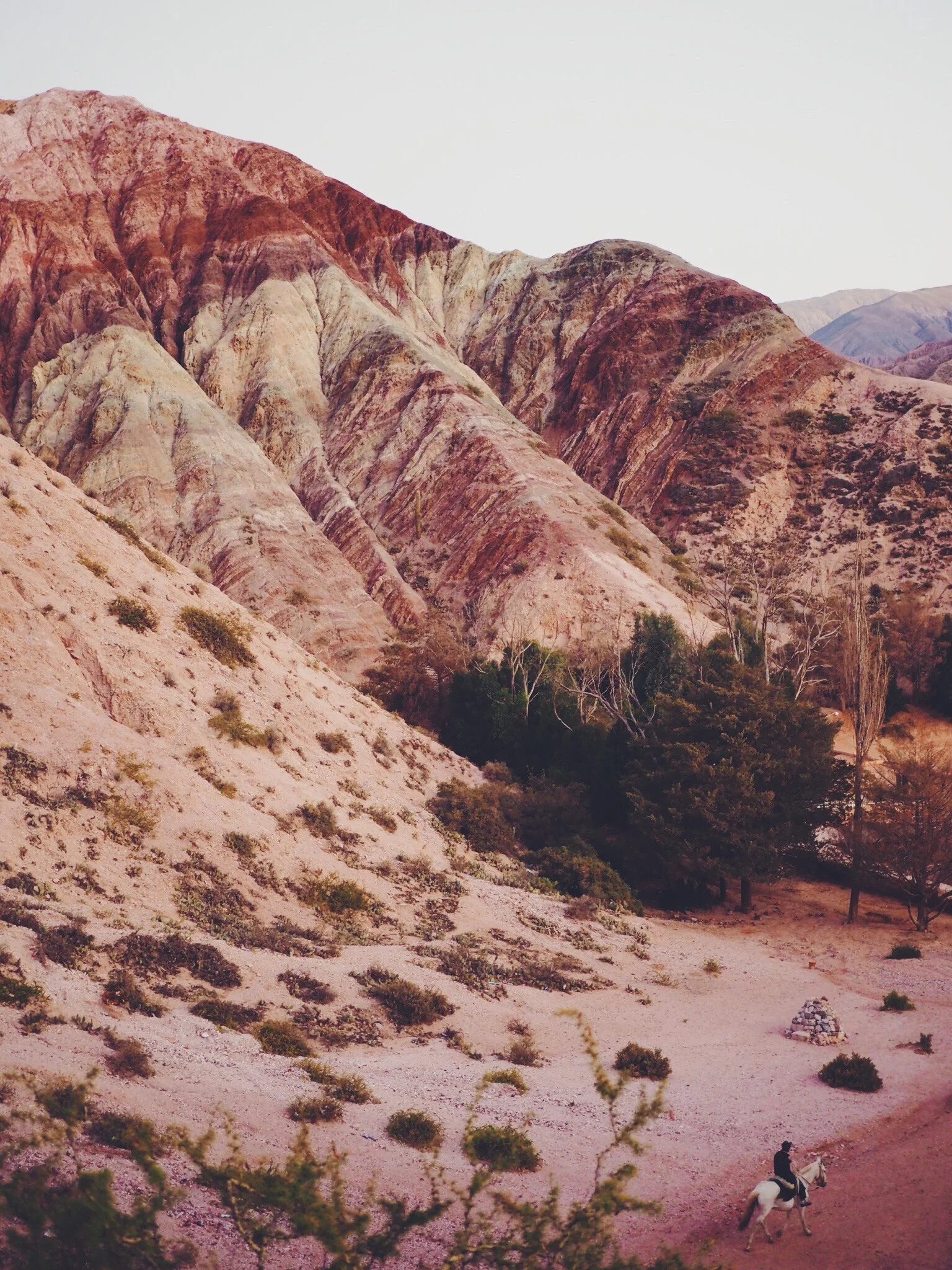 The following morning we woke up at 6am to see the sun rise over the Cerro de los Siete Colores (Hill of the Seven Colours) that puts Purmamarca on the map. We scrambled up the dark, rocky hillside to the viewpoint and waited for the sun to rise. As the light increased, the colours of the mountain got more intense, revealing the greens, reds and orange layers of minerals and metals that gives the mountain its name. The town was very peaceful and beautiful in the morning light, especially as there was nobody else around except a couple of gauchos on an early morning horse ride.