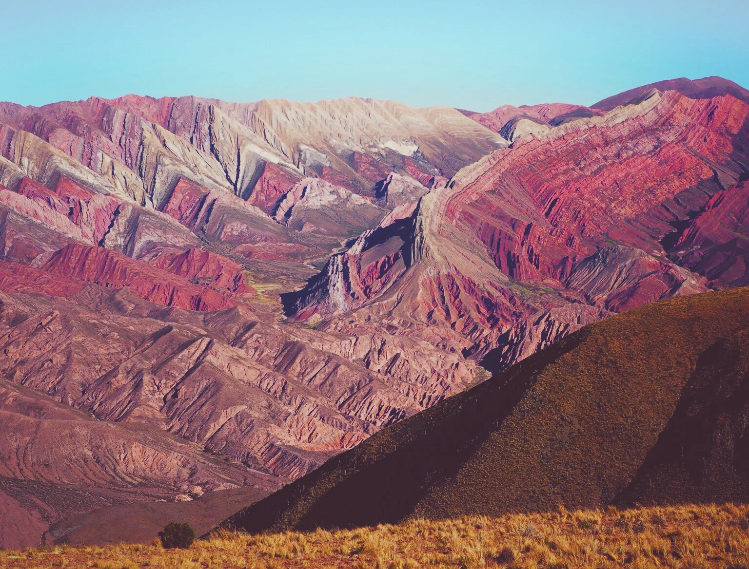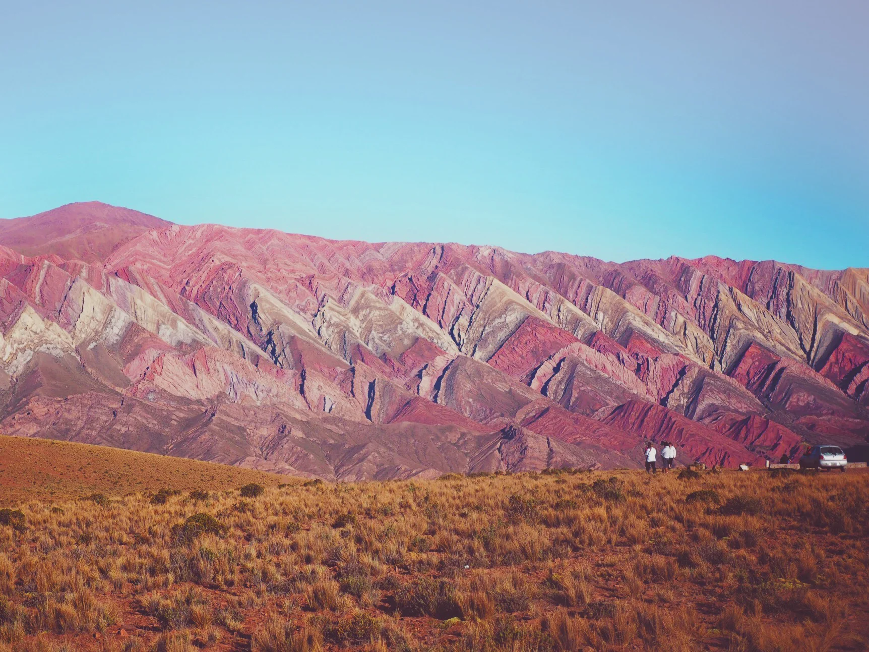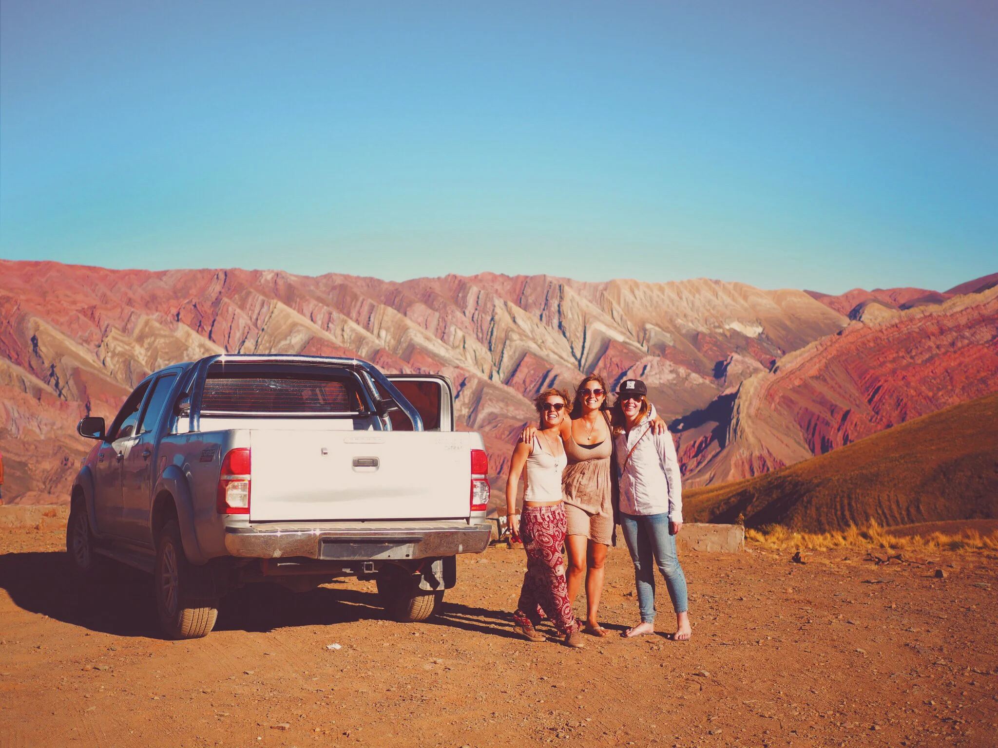 Although our tours were a great way to see the surrounding sights of Jujuy, we felt they were a little rushed. Because of this we had missed a sight we were really anticipating: the 14 Coloured Mountain, or Serranias del Hornocal, about an hours drive north of Humahuaca. The only way to get to the mountain from Humahuaca is by tour van or jeep, meaning we had to get a bus back to Humahuaca first. After some negotiations with locals and a bit of luck bumping into people we’d previously met on our trip, we managed to get a spot on a jeep. We drove along a bumpy, dusty road until we reached about 5000 metres above sea level. Two of us had to sit in the back, which was definitely the more fun and picturesque option!