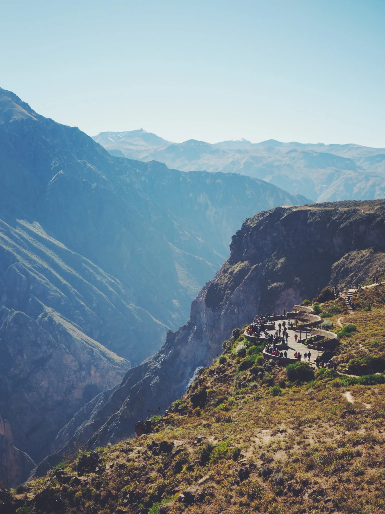 Cruz del Condor is a popular tourist spot on the way to the Colca Canyon where you can see giant Andean condors, a huge bird with a wing span of up to 3 meters and an important icon of South American culture. When we got there we found swarms of tourists already there, but luckily the condors didn't seem phased, and silently glided all around us in their numbers, often flying right overhead.
