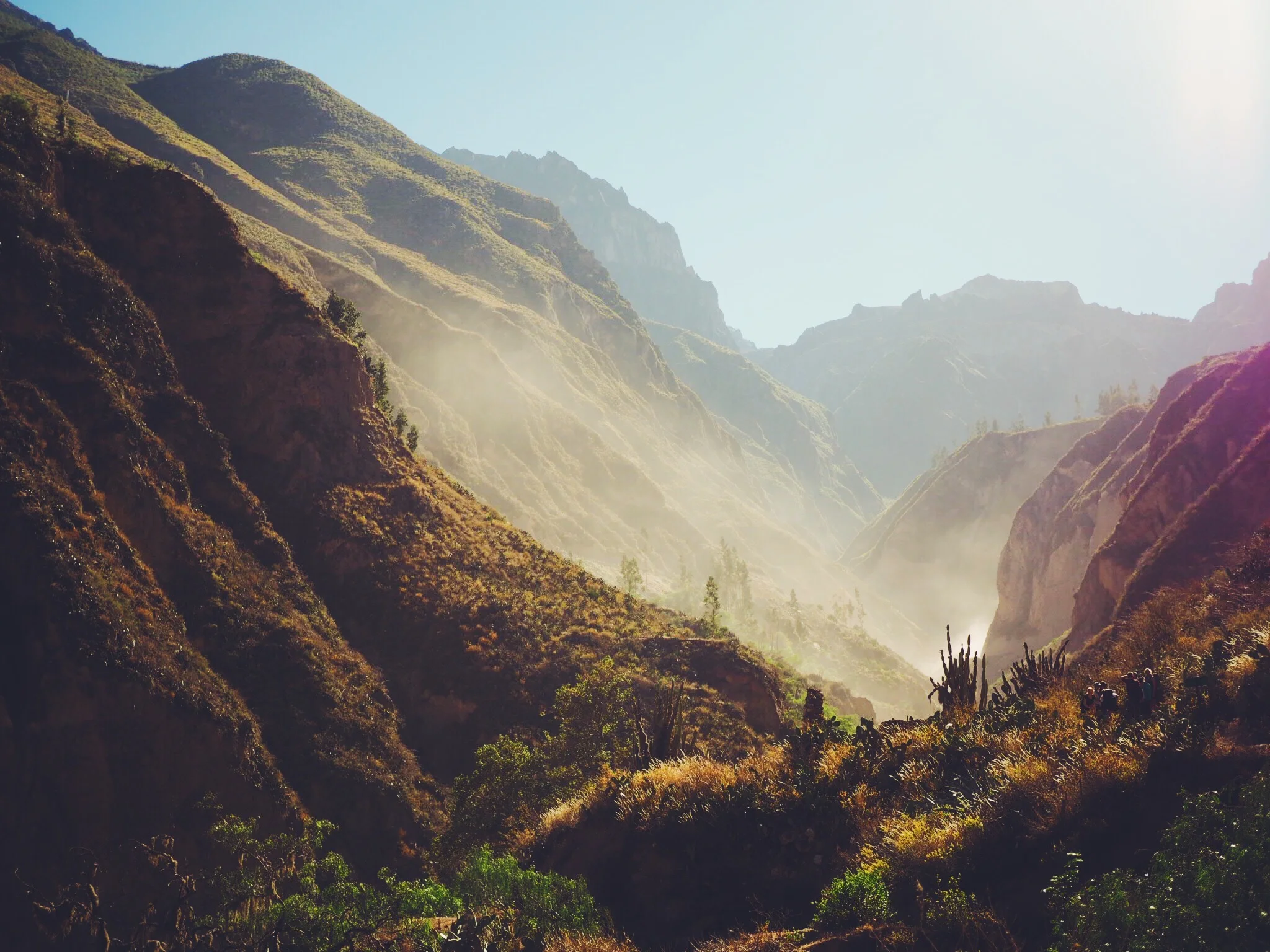 We got picked up from our hostel at 4am to get the 3 hour minibus to the Colca Canyon with a few other trekkers. After driving for a couple of hours the sun rose and we began to see the incredible scenery that led to the canyon, with green hills, Inca-style terracing and the impressive mountains that made up the Salinas and Aguada Blanca National Reservation. We stopped for a quick and basic breakfast at a small cafe before continuing to our first stop, Cruz del Condor.