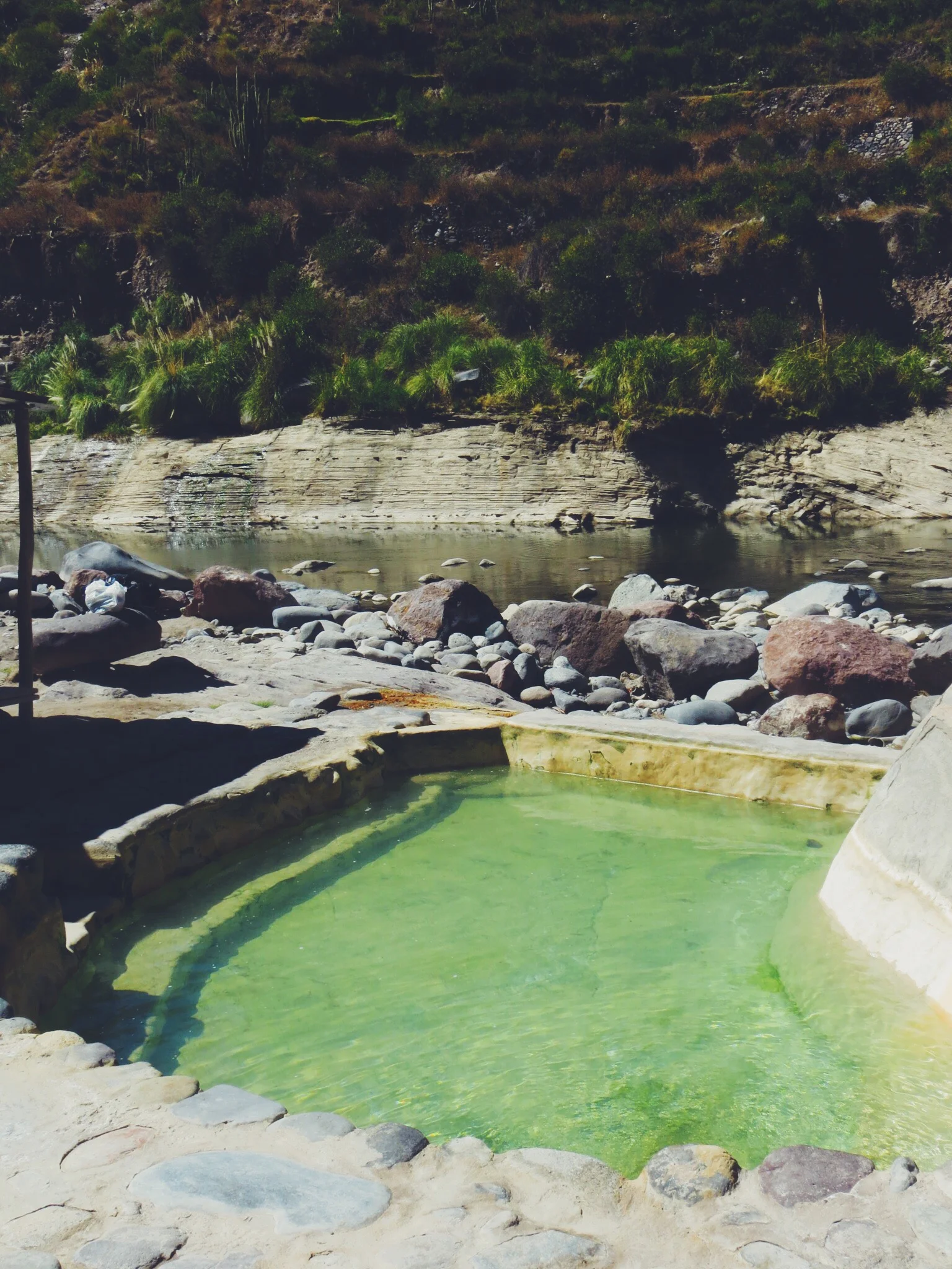 One thing we were really looking forward to on our trek was the Tambo hot springs. We made our way there, keen to soak our tired legs in the hot water. After walking down a short path and crossing a river we arrived at a series of pools. There were a few people in already, who warned that some of them were scorching! We decided to grab some cold victory beers while we dipped our toes into different pools to find the best temperature, and slowly lowered ourselves into one that felt as hot as we could manage.
