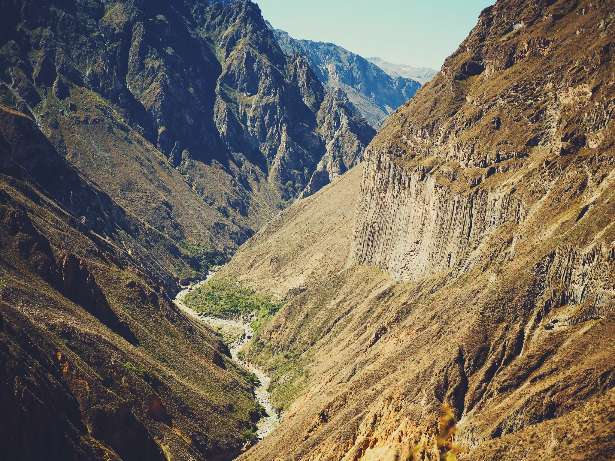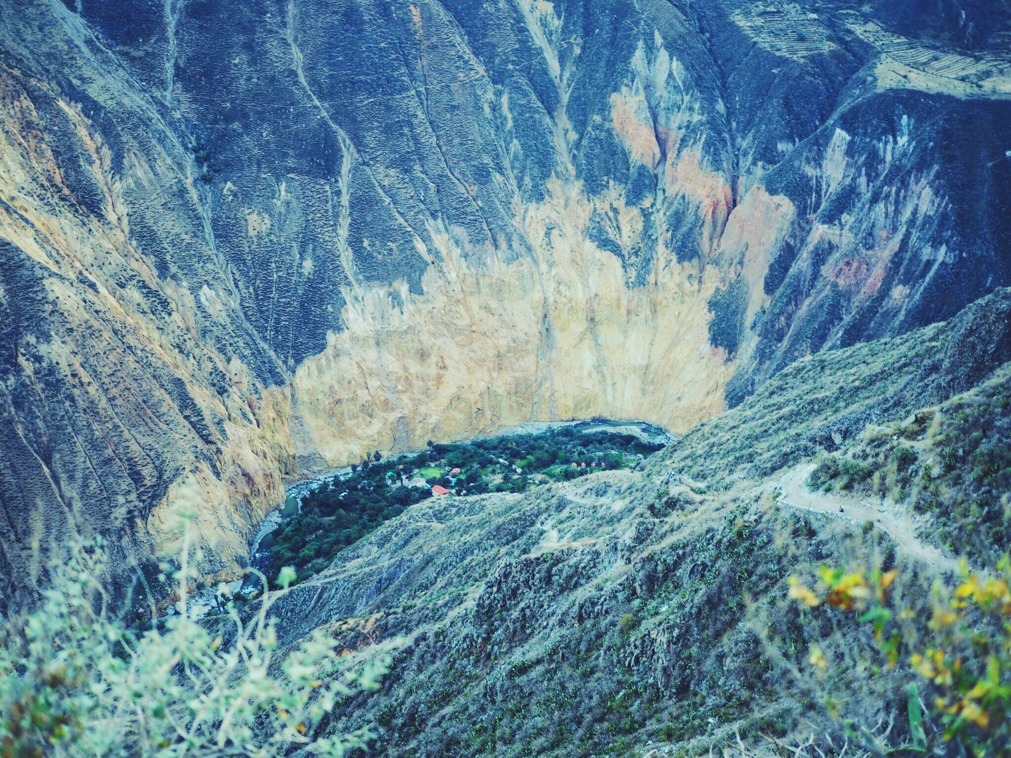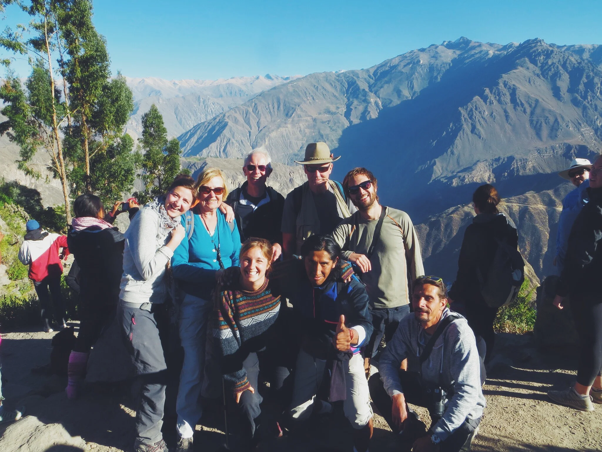 After getting a few photos we got back in the minibus and were driven to the starting point of the trek. We met our guide and introduced ourselves to our fellow trekkers, including a French couple and a group of elderly guys from Holland. Before we set off our guide explained the reason behind the name 'Colca', originating from a combination of the Inca settlements Collagua and Cabana (hence Col-Ca). He also explained that a Colca is a kind of Inca food store built into the mountains. We the set off in our small group down the steep canyon path, edging deeper each step we took, taking in the incredible scenery as we went.