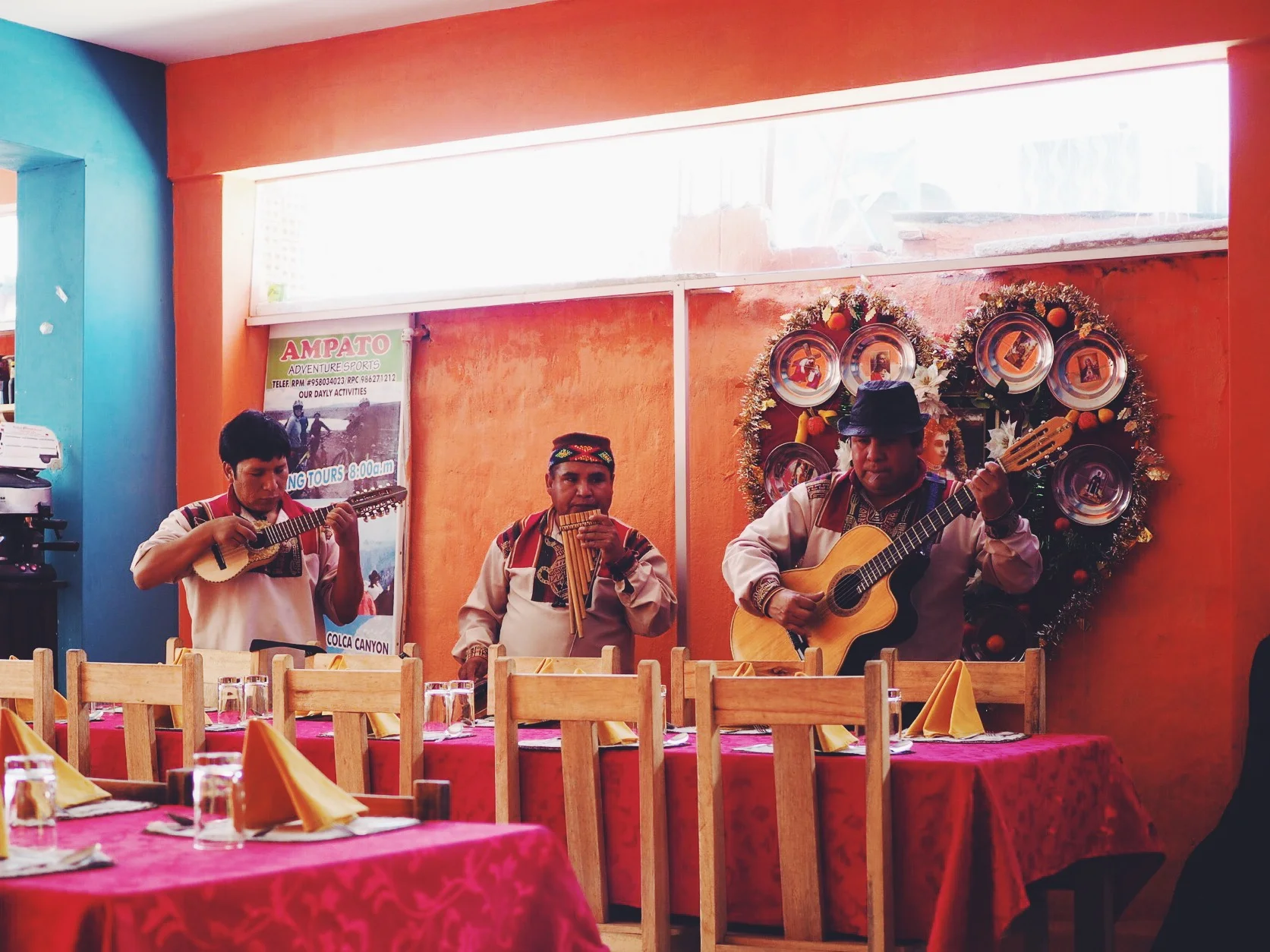 Continuing onwards we were taken to the small town of Chivay for lunch. The whole group piled into the Los Portales de Chivay restaurant where a large buffet table was on display with various typical Peruvian foods. Luckily it was an all-you-can-eat menu, meaning we could go to town! While we ate a local band started playing in front of our table, singing traditional music with pan pipes and guitars.