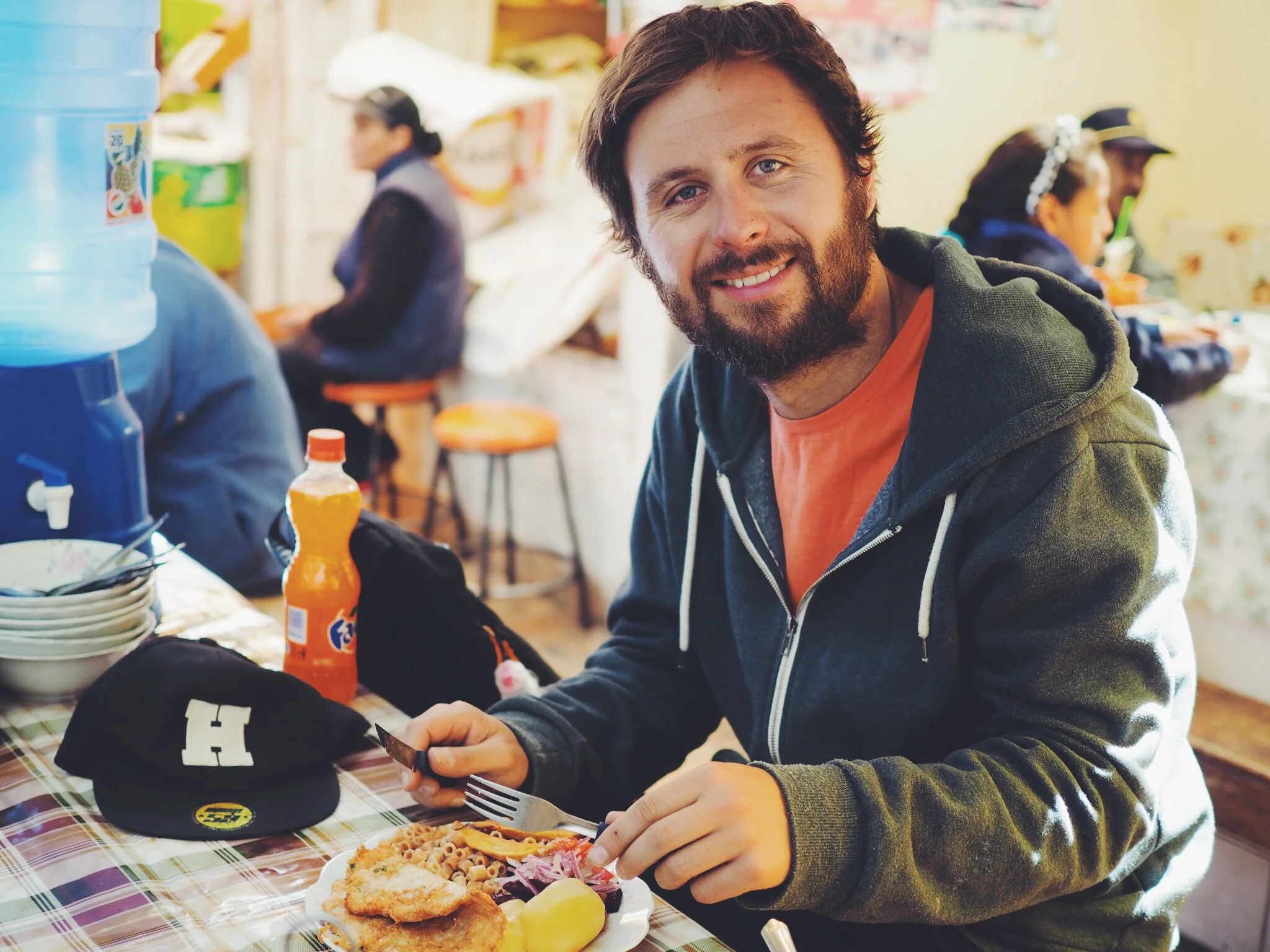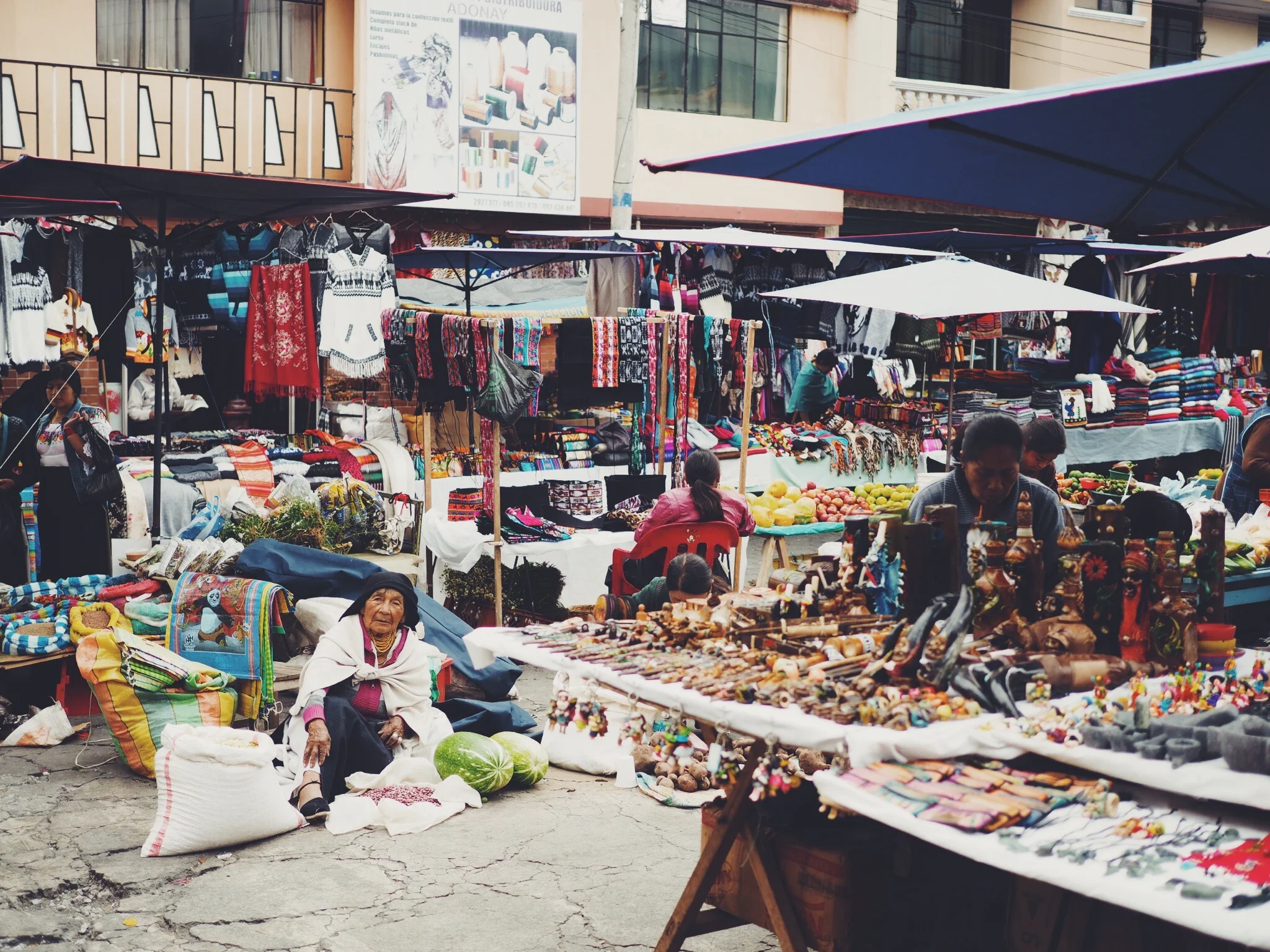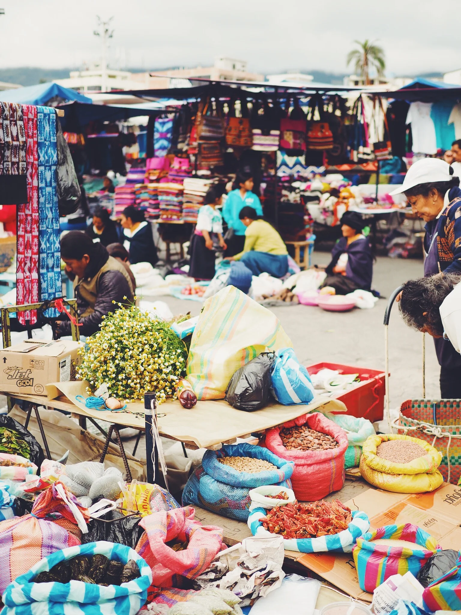 After wandering around the animal market we headed back to Plaza de Ponchos where the main market stalls were now in full swing. We had amazing roast pork and potatoes breakfast (typical in Ecuador) cooked by one of the local ladies, giving us the energy we needed to explore the many popup craft stalls that filled the entire town of Otavalo.