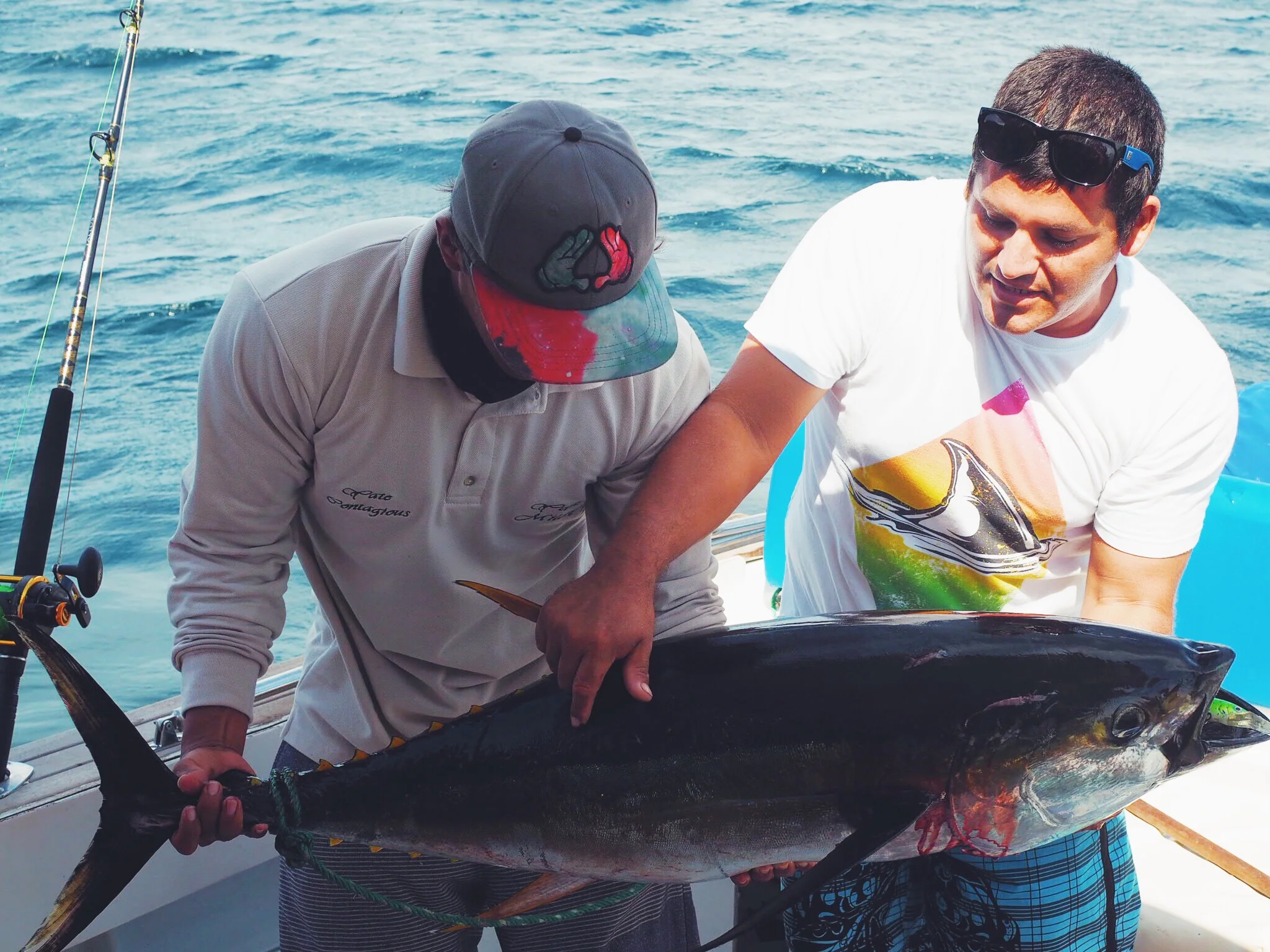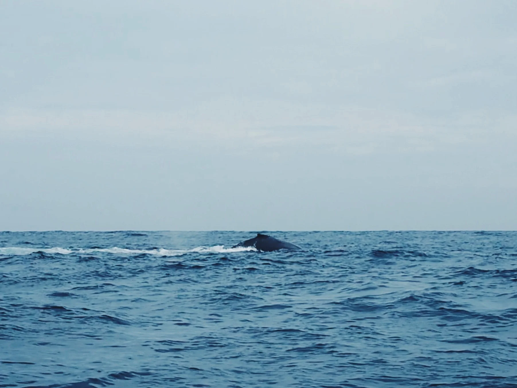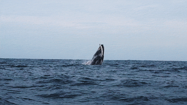 The journey back was our last shot at seeing humpbacks, and our guide told us we would be better prepared to find them this time. After half an hour of travel the captain signalled that there were whales in the area, and so we kept our eyes peeled looking for any activity in the expansive blue ocean. We started to notice large shadows moving beneath us, and some whales started to rise above the water level showing their tails and dorsal fins. There must have been about 6 in total, and we kept a look out, doing our best to capture the incredible animals on our cameras.