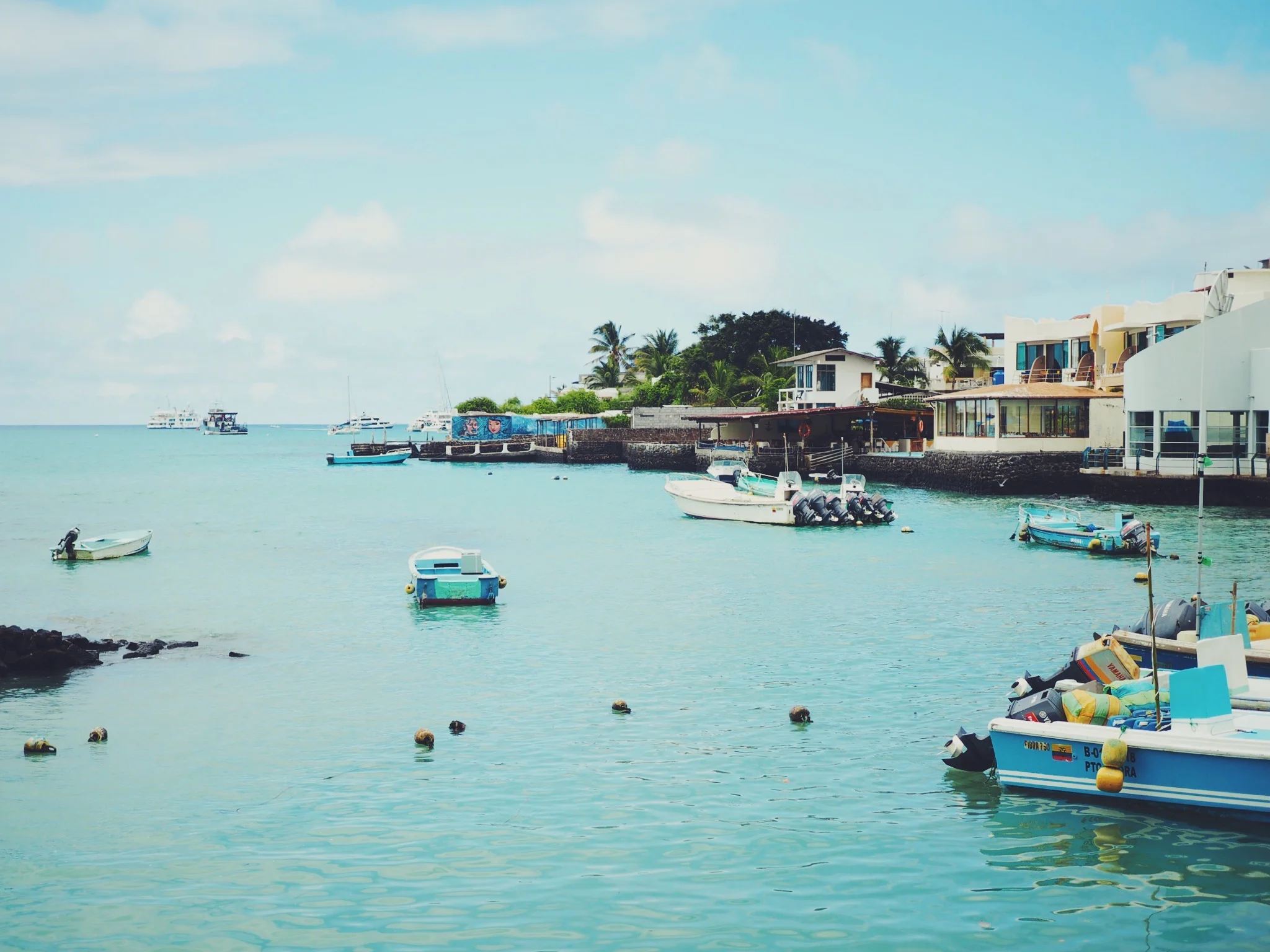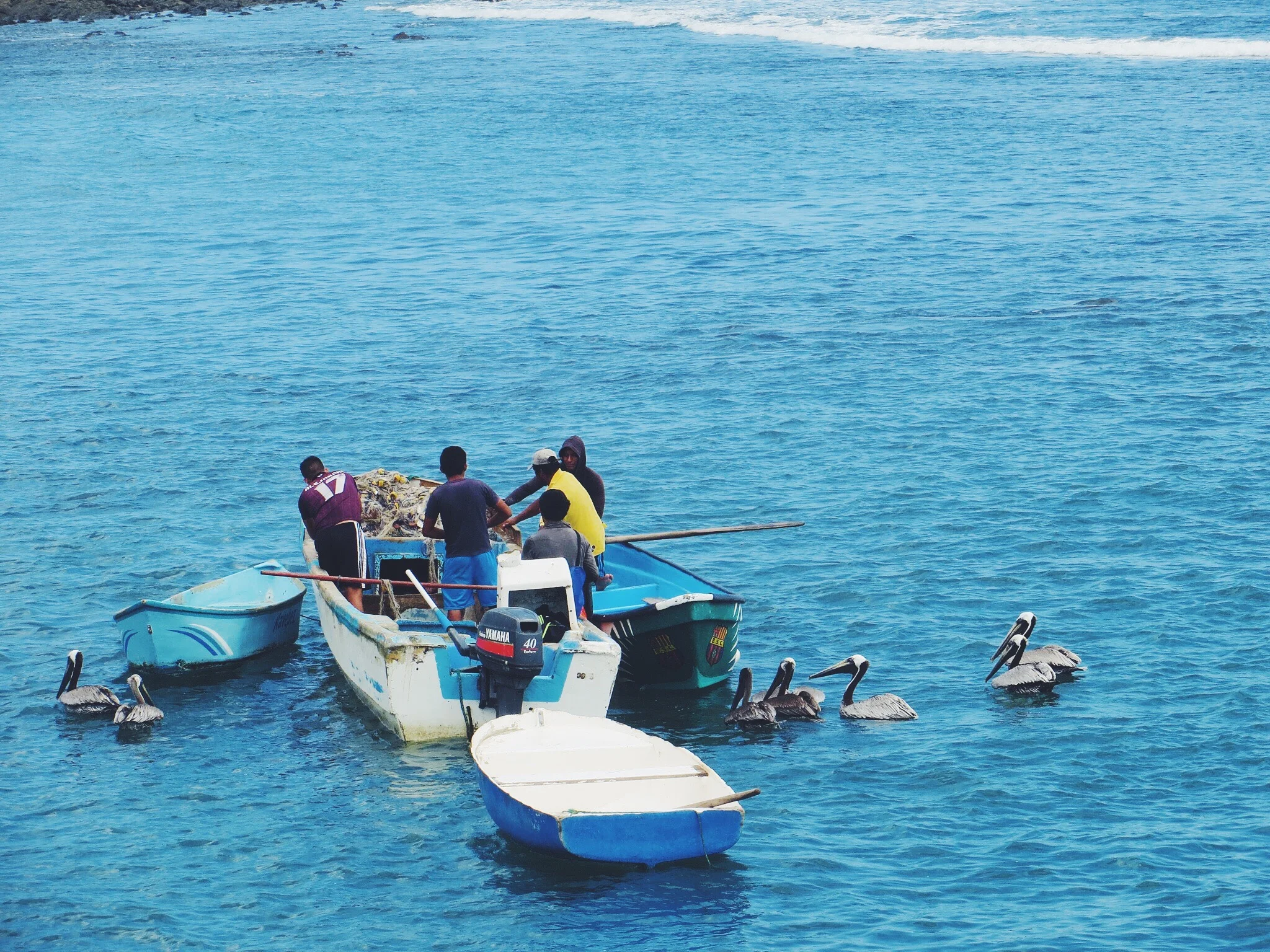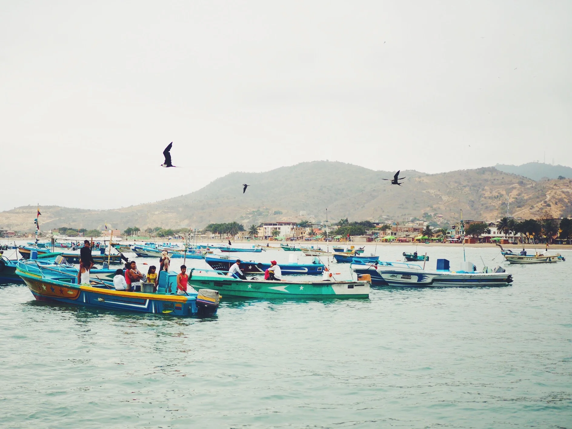 After an hours drive we arrived at the small seaside town of Puerto Lopez. The docks were filled with fishing boats, attracting many pelicans, and after being introduced by our guide we all piled into a boat and set off from the port towards Isla de la Plata. We were told by our guide to keep an eye out for whales on the way, and so our group were fixated on the deep water with cameras at the ready as we headed towards the island. After about half an hour we spotted our first whale on the horizon, but unfortunately it was too far away to see properly. We spotted a few others again in the distance but they all seemed to disperse, and our captain explained that we'd have a better chance on our way back.