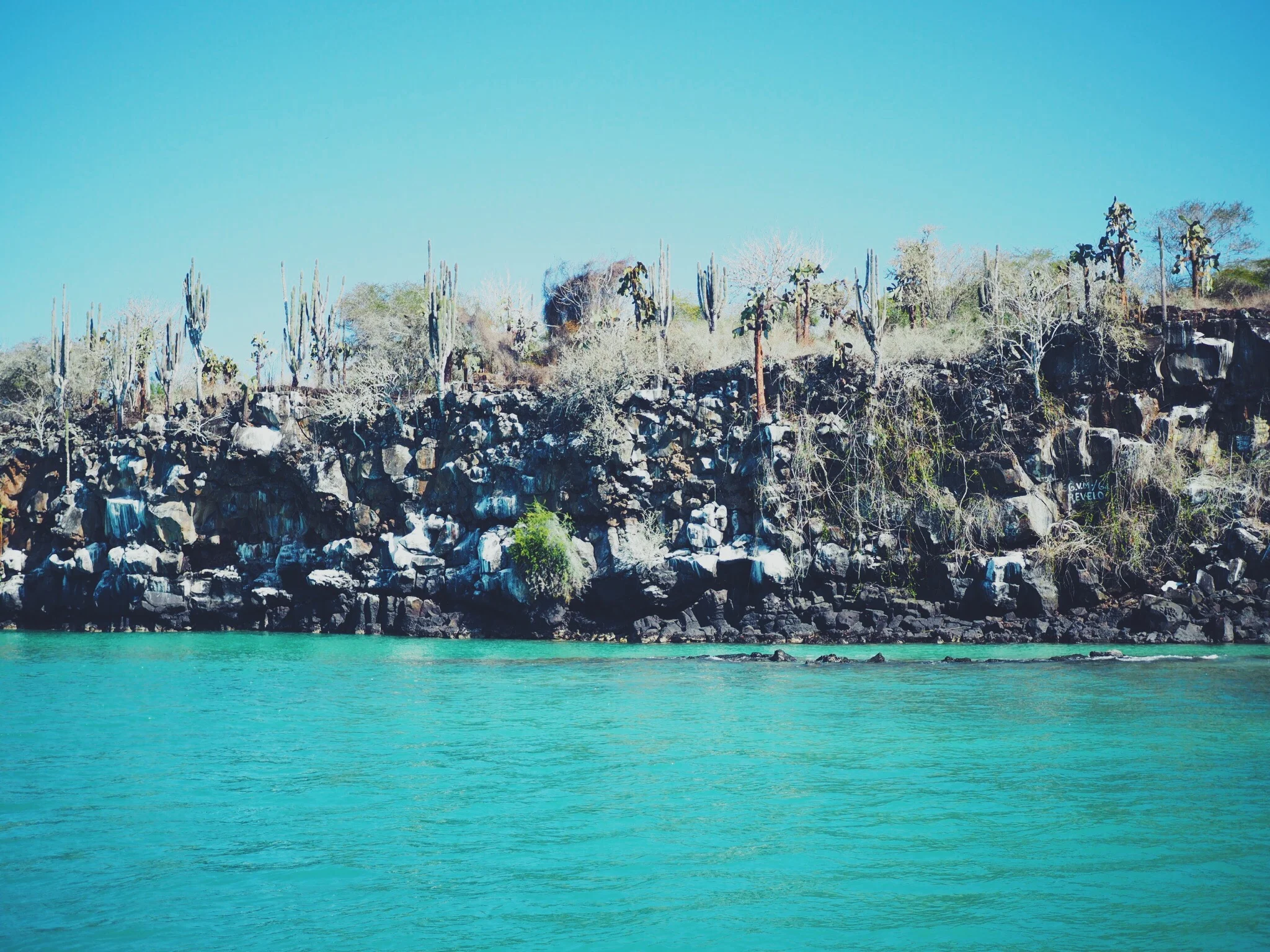 We continued further to the edge of the island and stopped at a huge cliff face that looked out over the ocean. There were many birds nesting and flying around the cliffs, including tropic birds, Nazca boobies and frigates. Our guide explained the meaning behind the name of the island - Isla de la Plata - meaning Silver Island. This was due to the colour of the ground covered by thousands of bird droppings. This created the illusion of a shimmering silver island for boats looking from a distance. We were also told that the fertile soil created from the droppings was incredibly sacred and valuable during inca times, and trespassing in these areas could be punishable by death!