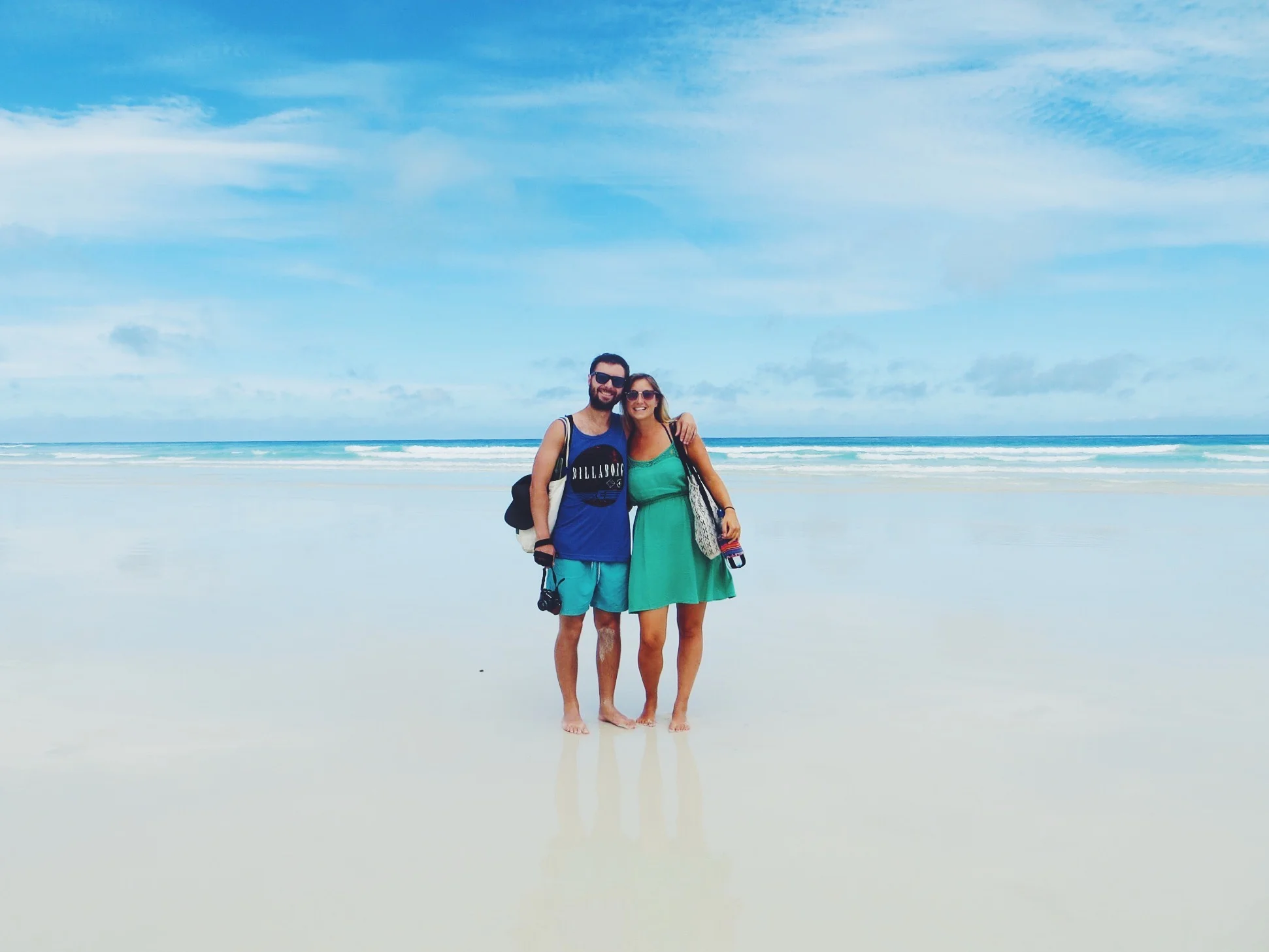 One of the most popular places to visit from Montañita is Isla de la Plata (also known as the 'Poor mans Galápagos') situated off the coast of Puerto Lopez, a town not far north from our hostel. Having just been to the Galápagos Islands we felt it might be a bit of a disappointment, but we had been told it was humpback whale season and spotting them was pretty certain on the journey there and back. By chance we bumped into the lovely Swiss couple who were also on our Galapagos cruise, Flo and Margot. As neither of us had seen whales during our cruise we were all excited to have another chance, and so they headed to Kamala hostel (who had organised the trip for us) and joined our group.