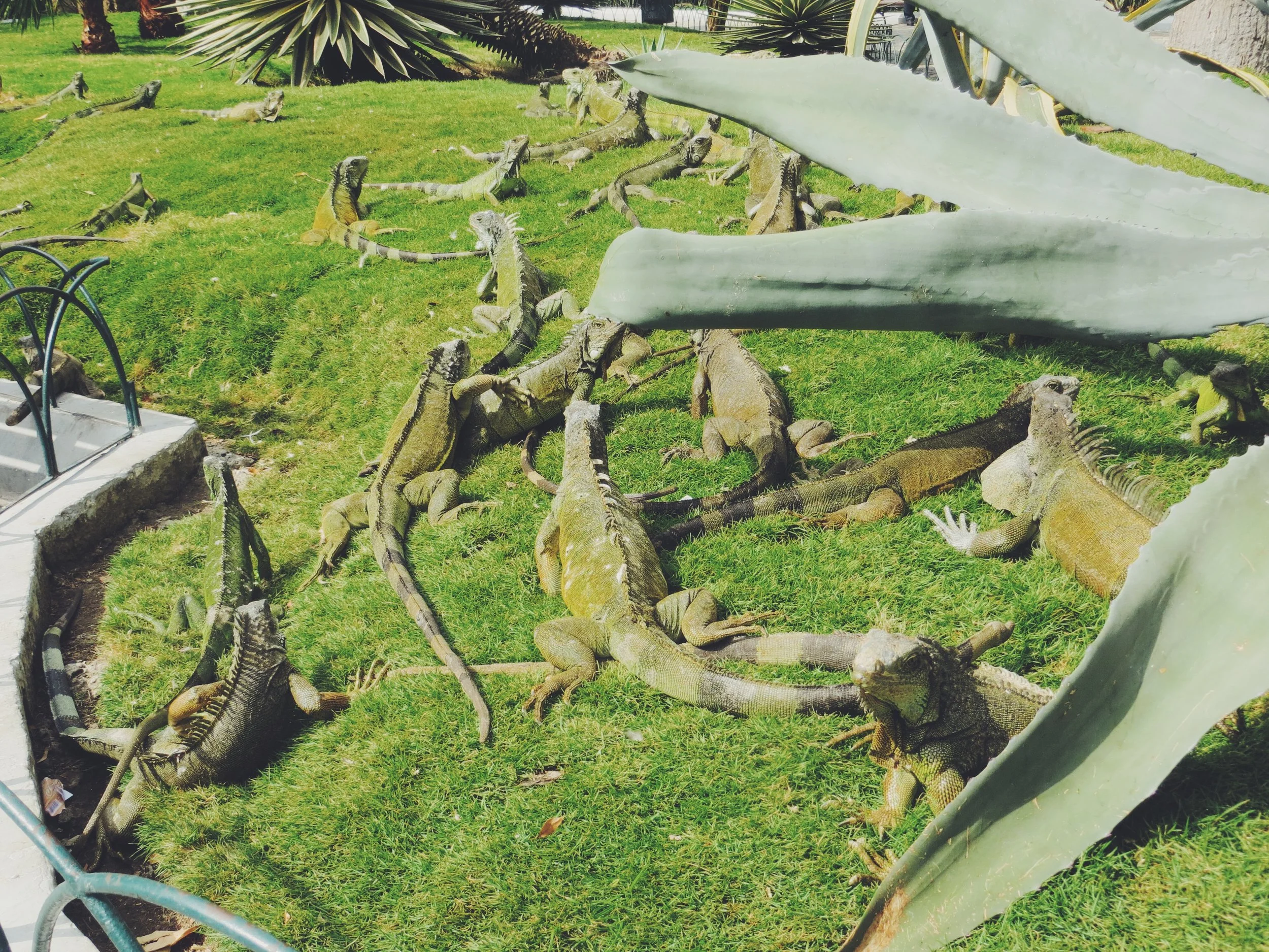 Our first stop was the Parque de las Iguanas, a small square located in the Seminar Park in front of the Metropolitan Cathedral of Guayaquil and surrounded by grand buildings. As the name suggested the park was teaming with large green iguanas, as well as terrapins bathing in various pools. Many iguanas were hanging in the trees, and so we had to be careful not to get hit by iguana poop as we wandered around! It was great being able to get so close to them, take a few snaps, and watch the locals feeding them with lettuce leaves and bananas.