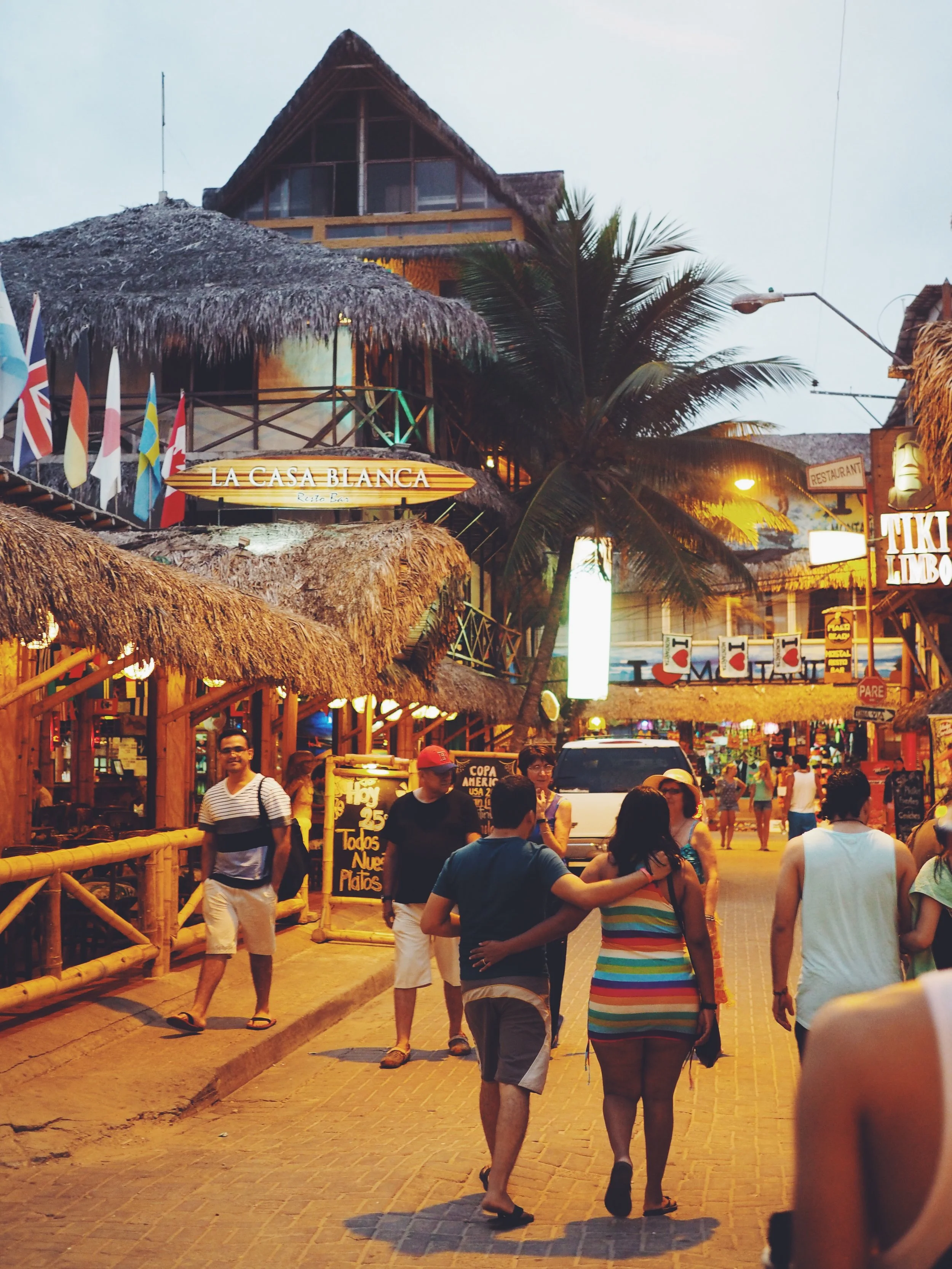 We spent a few fun hours getting to know Juan and Julio, and visited their favourite local juice bar, a historic clock tower, handicraft markets and a cheap but decent spot to try traditional Ecuadorian food. In return, they quizzed us about lots of English words, as the were keen to learn 'English English', rather than 'American English'. We had heard that Guayaquil wasn't the safest city to visit, so were surprised to find such generous hospitality. That being said, we were glad to have a local show us through the more edgy parts of the city, pointing out when to be wary of pick pockets. After an interesting afternoon of exploring Guayaquil it was time to move on, and so we headed back to the bus station around 6, and took the 3-hour bus west to the costal town of Montañita.
