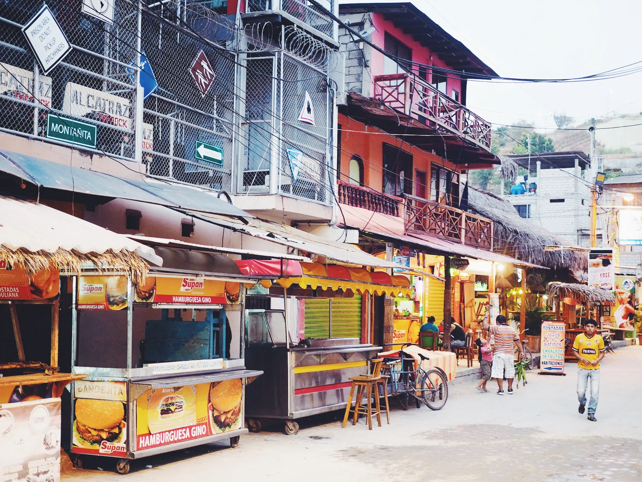 The beach was literally 20 meters away from the hostel, making it ideal to go for a quick swim (when the waves weren't too big!), or stroll down the coast along the sand to get to the town. The following morning, after a hearty breakfast of fruit and pancakes, we wandered down the coast to the centre of town to suss it out. Our fist impression of Montañita was that it felt a little tacky, but it definitely had a fun atmosphere and seemed like a great place to have a big night out. We stopped for lunch at a small restaurant and ordered the 'menu de dia' to keep things cheap.