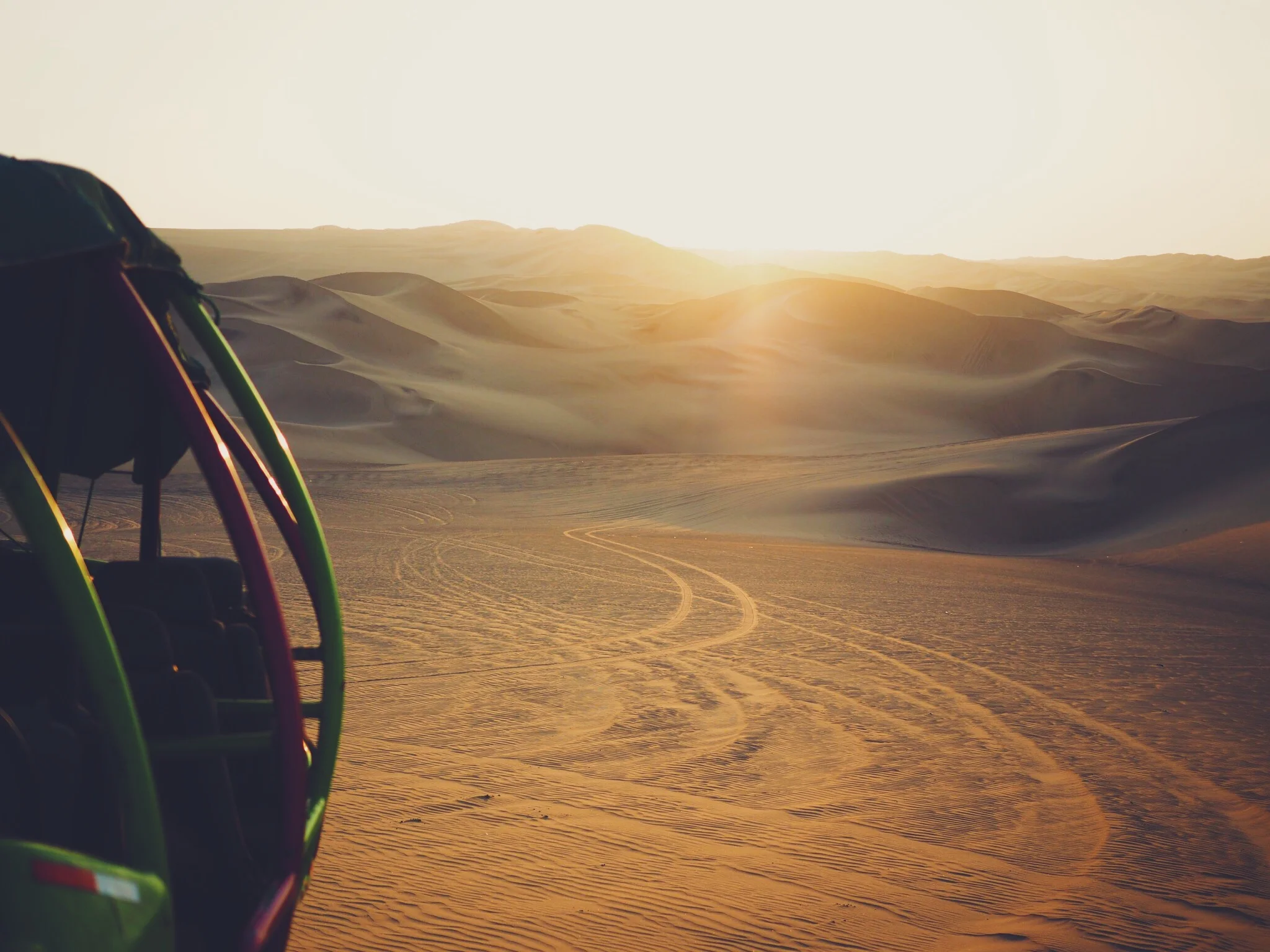 On our second day we prepared for our buggy tour through the massive sand dunes surrounding the oasis. The tour didn't started until 4pm, and so we managed to get some relaxing pool time in, and by the time we were due to leave luckily the desert heat had subsided. We hopped onto the reinforced steel buggy parked outside our hostel with about 8 others, and strapped in using the heavy duty seat belts. The driver slowly eased through the town in a convoy of other buggies until we reached the entrance to the dunes.